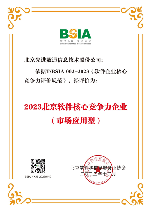凯发K8荣获“2023北京软件核心竞争力企业”荣誉