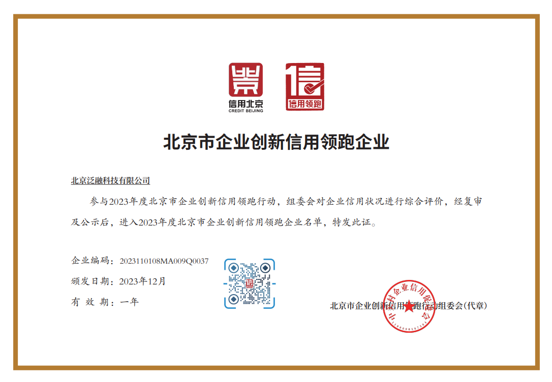 凯发K8和泛融科技获评2023年度北京市企业创新信用领跑企业